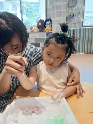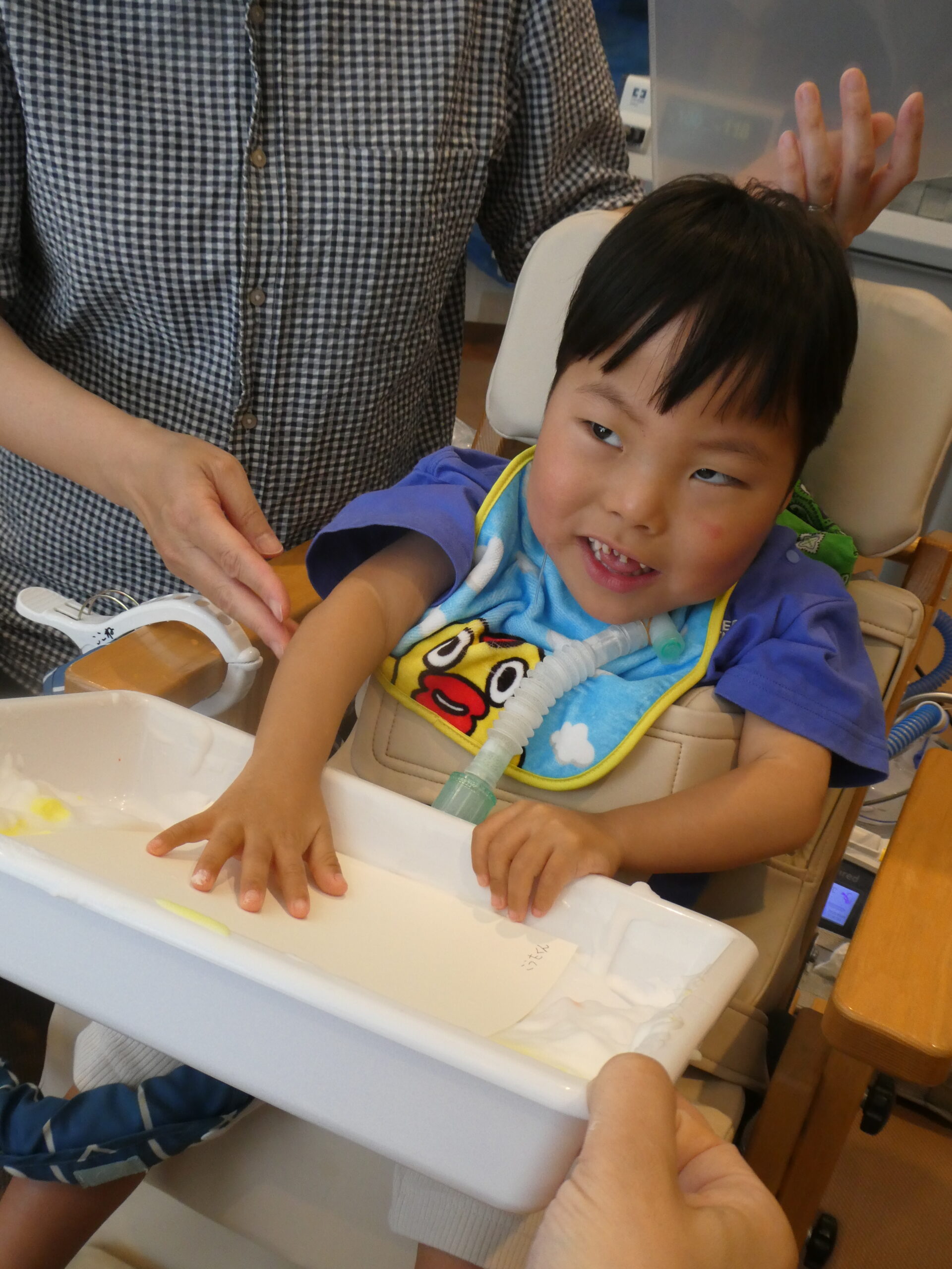 8月の活動では、シェービングフォームを使った、泡アートを行ないました☁