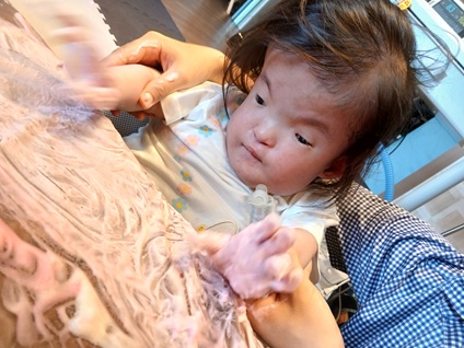 いい匂いのする、もっこもこの泡にみんな興味津々☺️