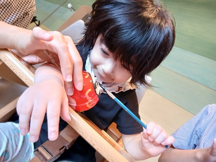 「リーン」とガラスがぶつかり合う涼し気な音色に興味津々です。