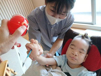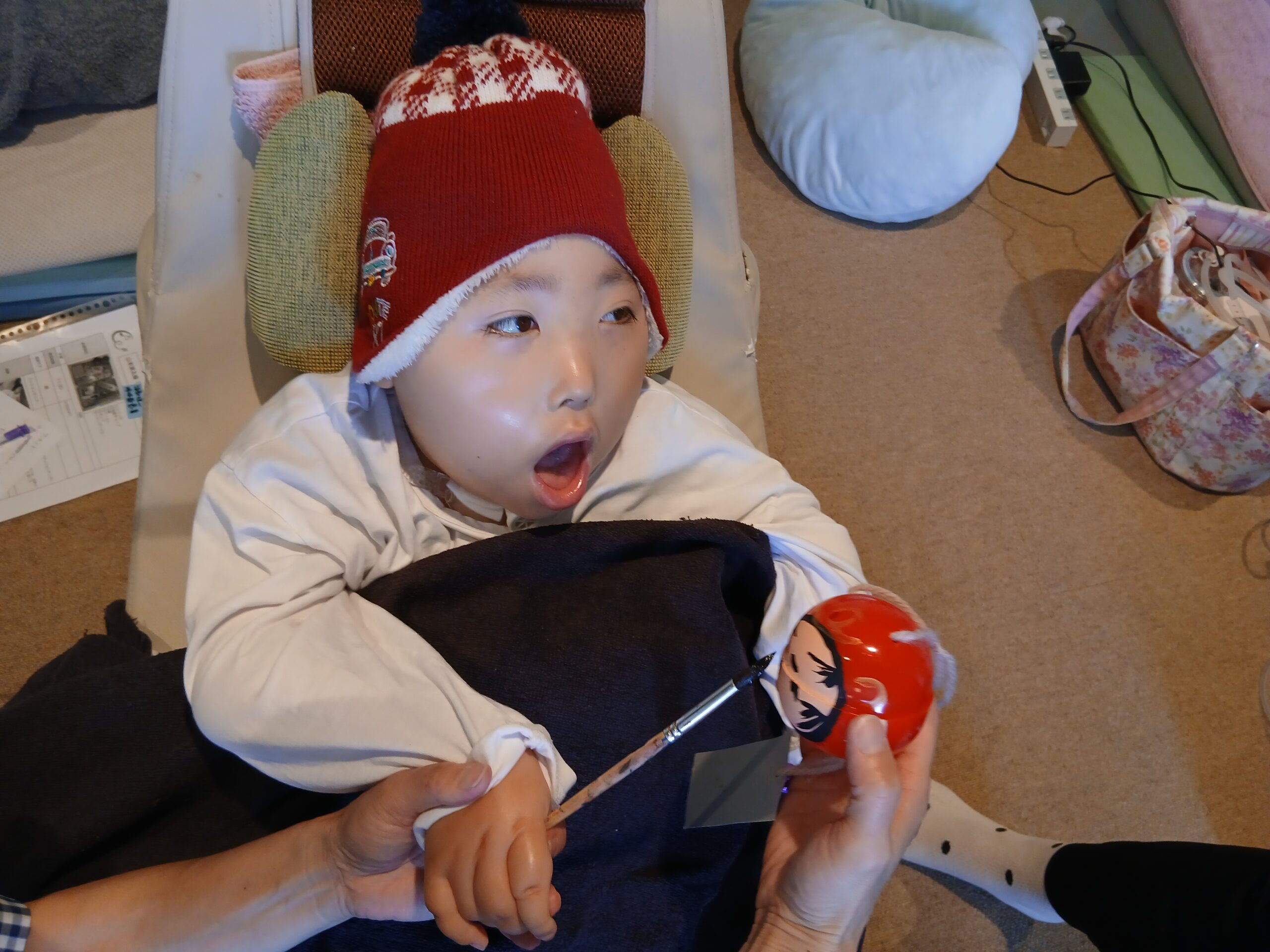 真剣な表情で筆を握り、慎重に描くお子様や、豪快に筆を動かすお子様など、個性豊かなだるまのお顔ができあがりました。