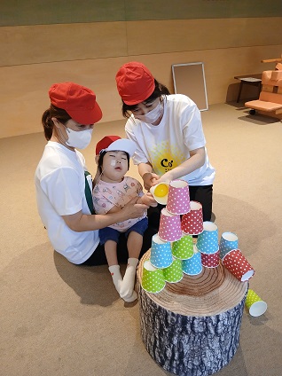 パカッという音に反応するお子様や、穴をのぞき込むお子様など、それぞれの個性豊かな反応が見られました。