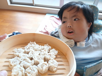 10分程蒸した後、せいろの蓋を開けると、モクモクと水蒸気が立ち上り、同時にシウマイの良い香りが広がりました。せいろの近くでにおいをかぐと、モグモグと口を動かすお子様もいました😋