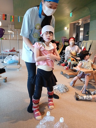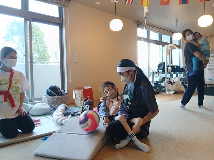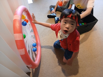 手でボールを支えながらしっかりと狙うお子様や、バスケットボールのようにボールをバウンドさせるお子様や、手ではなく足でキックしてボールを転がすお子様など、それぞれの工夫でみんなたくさんの的を倒すことができました。