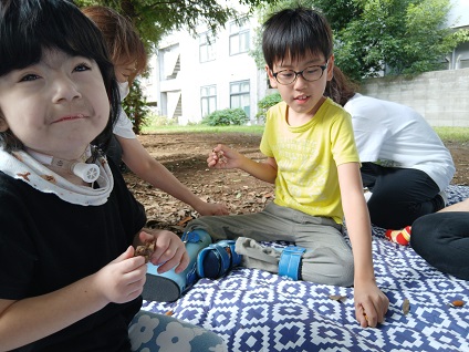 落ち葉の上を移動すると、帽子付きのどんぐりが落ちていたり、秋を見つけることができました🍂