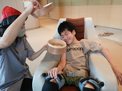ラジオ体操では、スタッフと一緒にダイナミックに身体を動かしました。