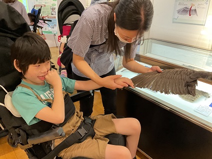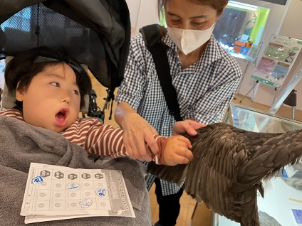 鳥の羽に実際に触れることができるブースでは、普段間近で見ることがない羽を不思議そうに見つめるお子様や、少し怖がるお子様もいましたが、様々な鳥の鳴き声を聞くことができるブースでは、みんな興味津々な様子で画面を見つめていました