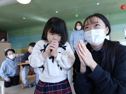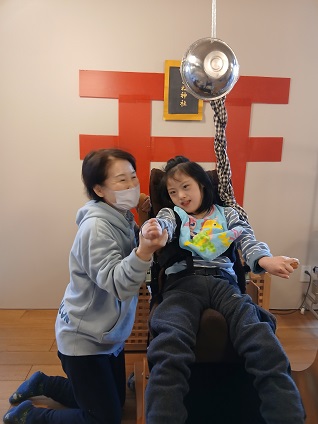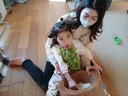 鳥居の前でお餅つきをしたときには、スタッフが勢いよく餅をつく姿を興味津々に見たり、笑顔で「はやくやりたい!」と伝えてくれたりするお子様がいました。