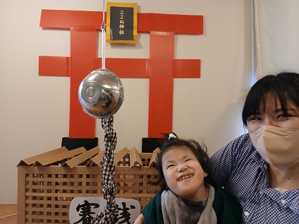 一回では上手くお賽銭が賽銭箱に入らず、頑張って何度も入れなおすお子様がいたり、鈴の音色が気に入って何度も紐を揺らして鳴らすお子様がいたり、とても楽しい初詣となりました。