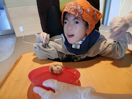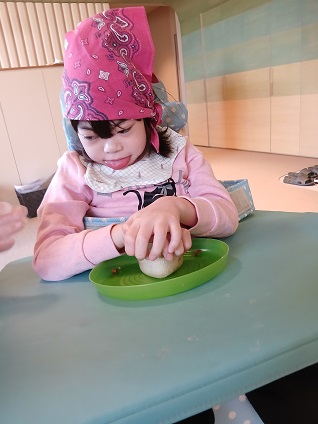 最後に、出来上がったおにぎりを袋に入れて、大分県の特産品の「すだち」のシールを貼って、お持ち帰りしました😊