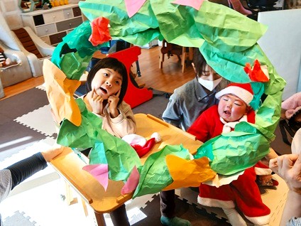 12月に入ると、ここねはクリスマスムード一色に。室内の飾りやクリスマスツリーを眺めたり、クリスマスの絵本や手遊び、製作を取り入れたりと、子どもたちもスタッフも毎日がクリスマスのようなわくわく感です♪