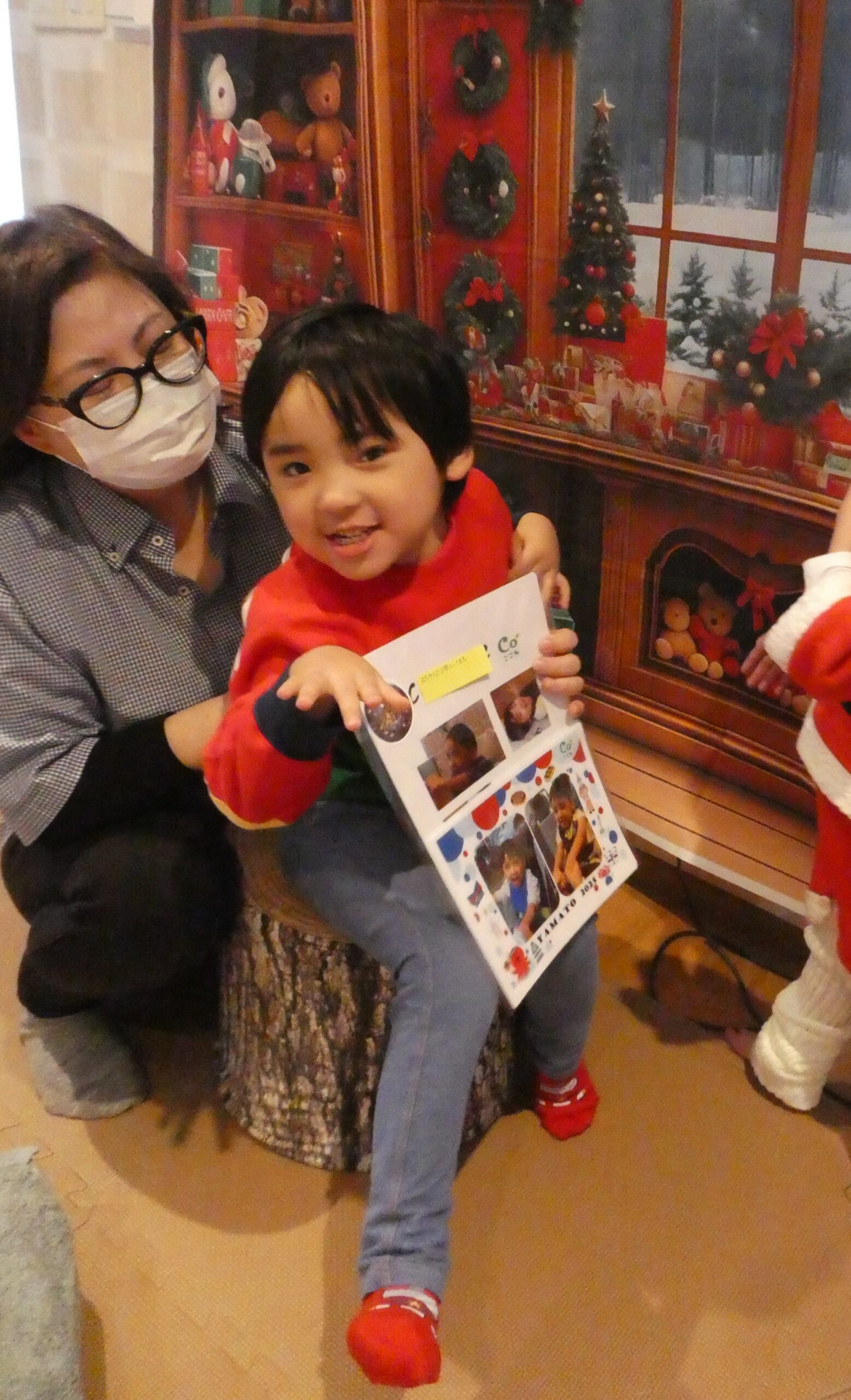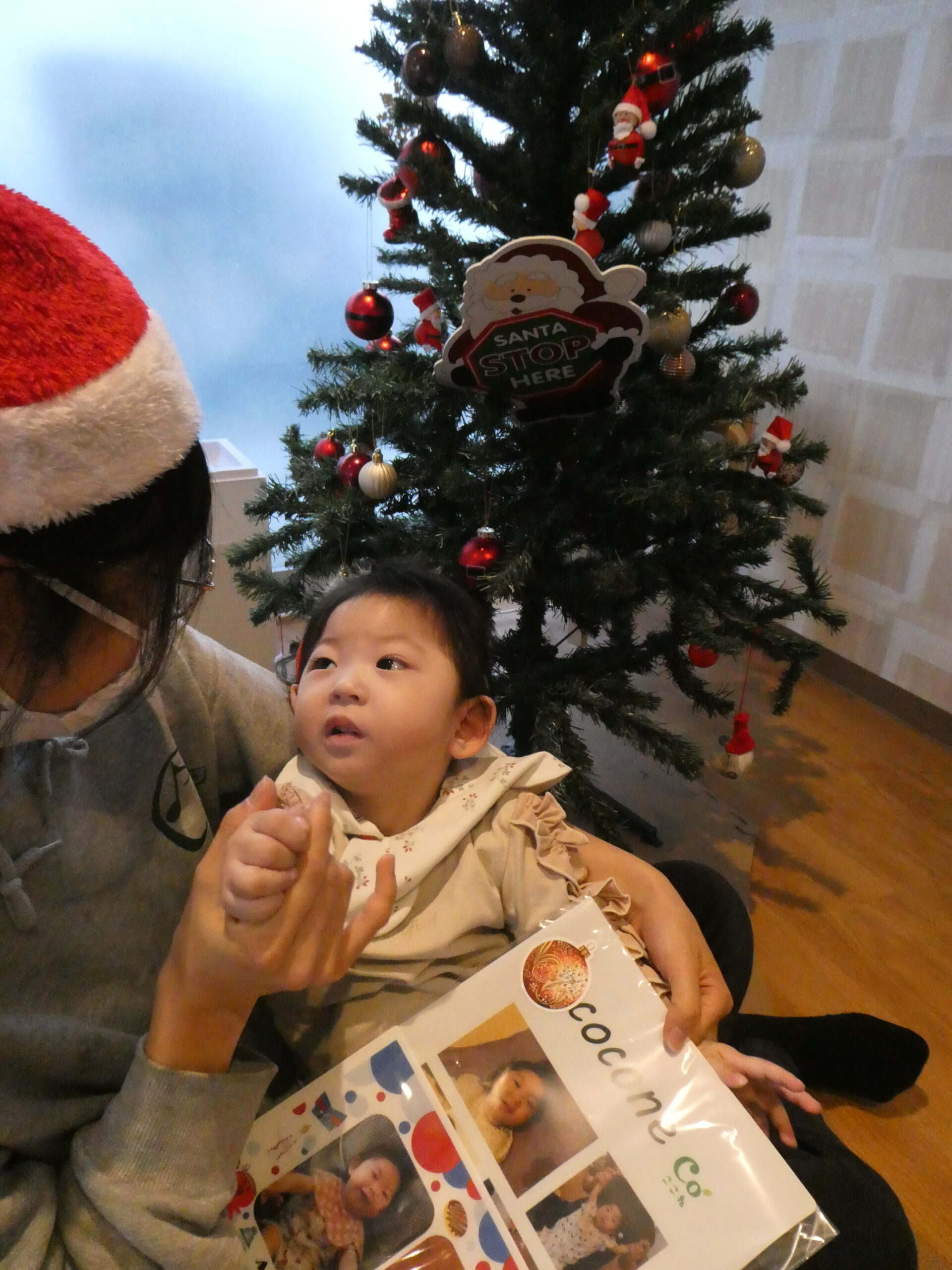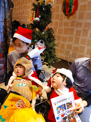 はじめは驚いた様子で、お顔をじーっと見つめていた子もいましたが、優しいサンタさんだと分かるとにっこり。ハイタッチをしたり抱っこしてもらったり、かわいいプレゼントをもらってとっても嬉しそうな子どもたちでした🎁
