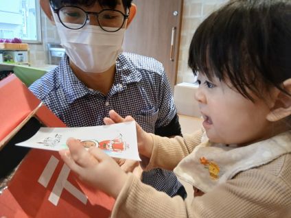 今年の活動では、まずは年賀状について知り、パネルシアター『じゅうにしさんのおはなし』を見て干支について知りました。