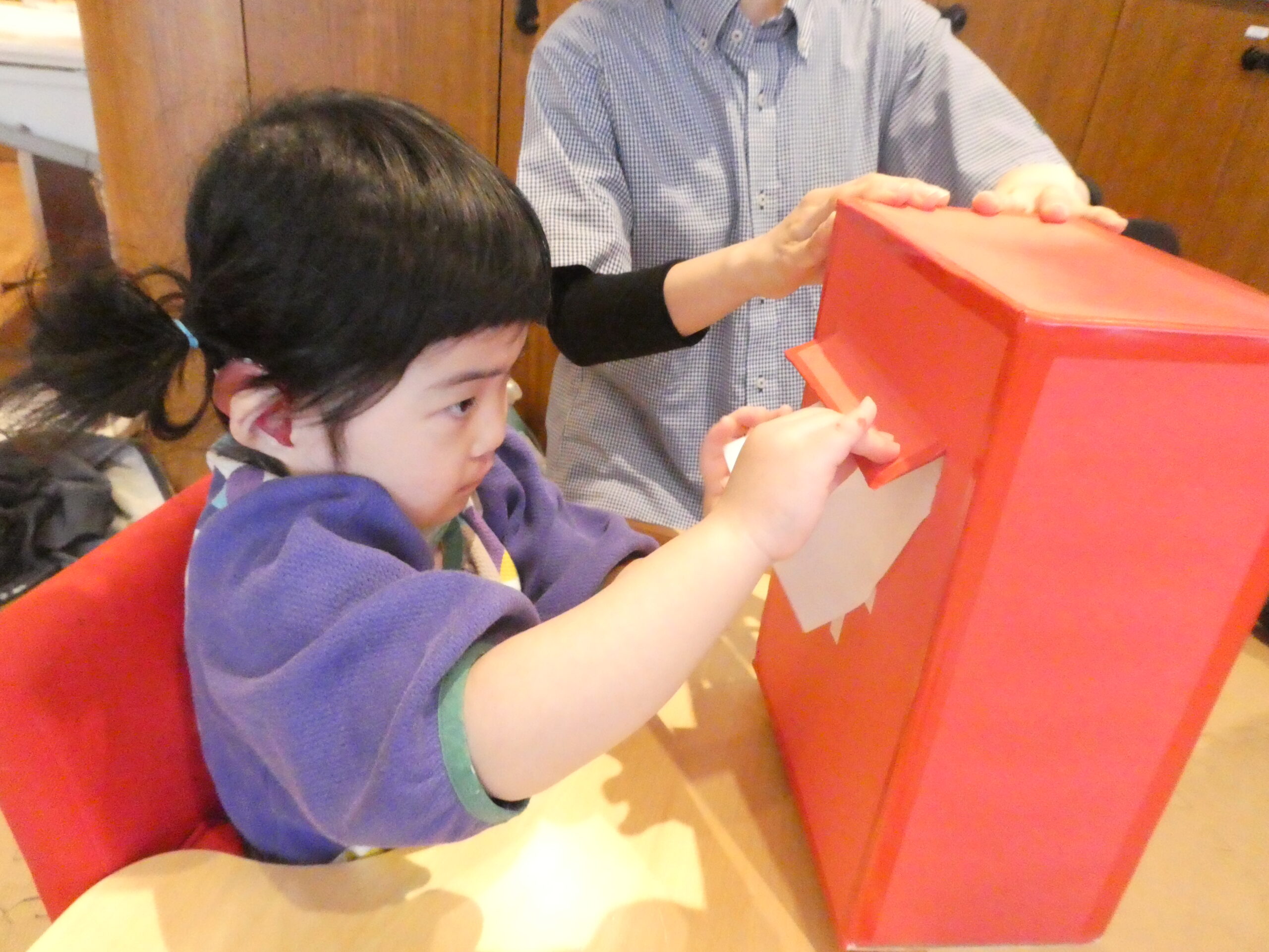 完成した年賀状は、ここねの手作りポストに投函します📮