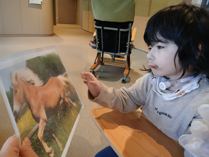 来年は午年なので、スタッフが馬とはどんな動物なのかを写真や動画で説明し、お子様たちにイメージを膨らませてもらった後、いよいよ年賀状の製作開始です🐴