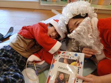 ここねにもサンタさんが来てくれて、一人一人にプレゼントを手渡してくれました🎅🏻