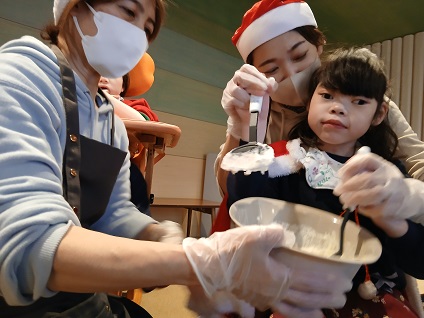 少し驚いた様子のお子様や、興味津々でおひげに触れてみるお子様や、満面の笑みのお子様等、それぞれので反応がとても可愛いらしく、とても和やかなクリスマス会でした✨